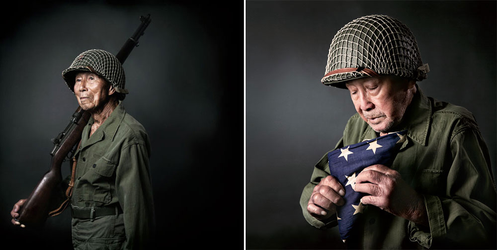 "Portraits of Courage: Photographs by Shane Sato" features 12 large prints of Japanese American WWII veterans. These Americans of Japanese ancestry came from remote prison camps or the plantations of Hawaiʻi to fight for their country.